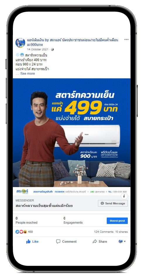 โฆษณาบน Facebook เพื่อสร้าง Engagement กับโพสต์โดยที่ระบบพยายามวิ่งหาผู้ชมโฆษณาที่มีโอกาสสร้างไลค์, คอมเมนต์, แชร์ สู้โพสต์โฆษณาของเรา เพื่อแนะนำสินค้าและบริการ